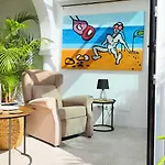 A Stylish Holiday Home With Sea View In Maspalomas magába foglal egy fürdőszobát pezsgőfürdővel, mosógéppel és zuhanyzóval. A fürdőszobákban hajszárító és fürdőlepedők is biztosított kényelme érdekében.